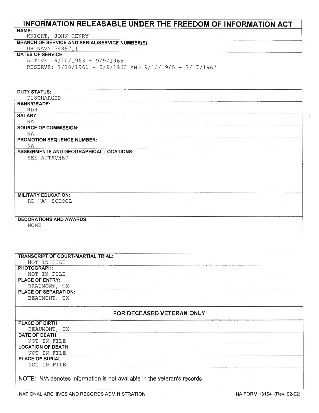 Those pesky official forms with dates have reared their ugly heads again. He had what appeared to be 2 years of non dick stepping service. I won’t speak dead of the evil lies.