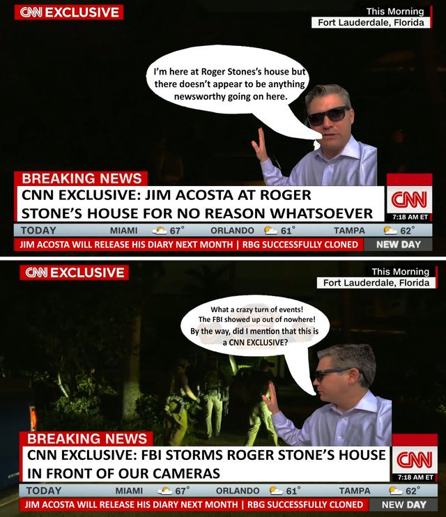 Folks are claiming that CNN was on position in time to catch the FBI arresting Rodger Stone early in the morning. He has been charged with obstructing an investigation, making false statements, and trying to get people to lie to the investigation.