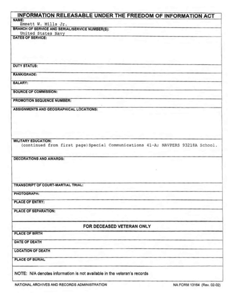 The Navy gave results on an Emmett Mills with a completely different Navy background but this man is one and the same.
