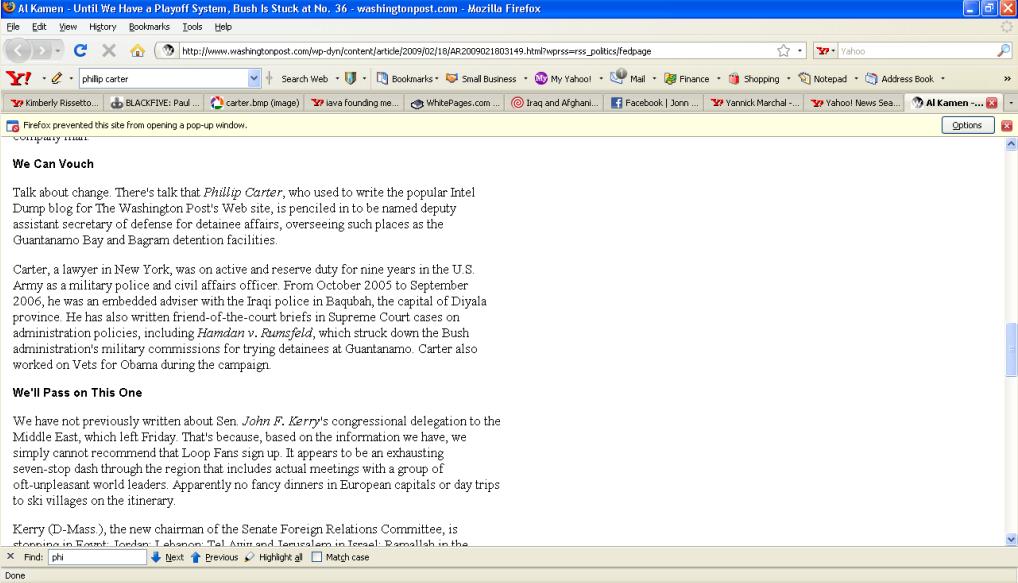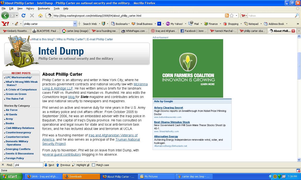 If you read our posts last Fall about Carter and his connections to both the campaign and the IAVA, you already know that IAVA and Phil Carter colluded to split veterans and active duty service members from the McCain campaign by ginning up a phony “scorecard” that made it appear that politicians like Duncan Hunter had a worse record of support than Baghdad Jim McDermott. Well, that worked well for Carter, because he’s now the Deputy Assistant Secretary of Defense for Detainee Affairs.
