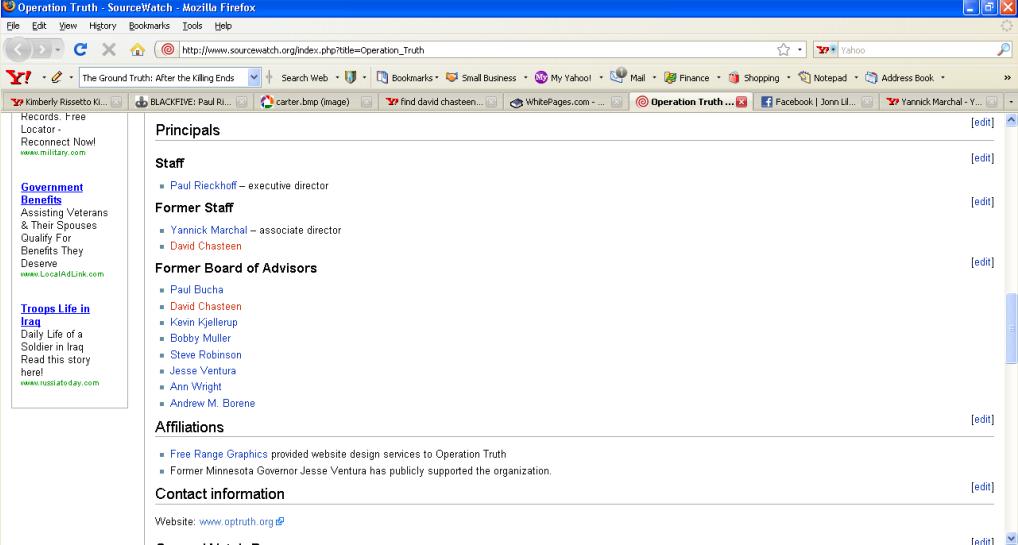 Reickhoff then established his first organization, OpTruth.org. he assembled a board of directors and here are their names from Source Watch;