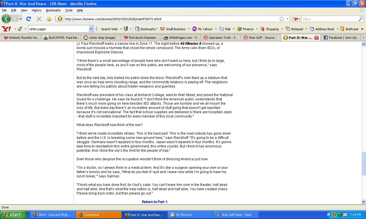 While he was in Iraq as a young El-Tee, Reickhoff was supportive of the US mission there, evidenced by this interview he did with 60 Minutes;