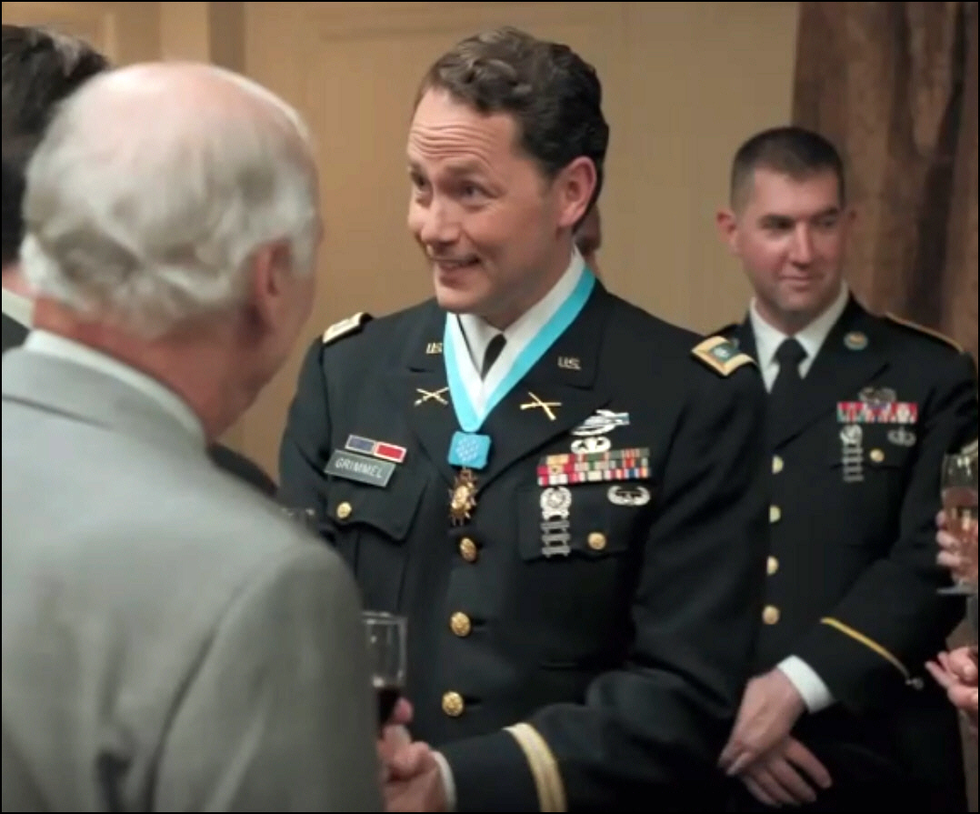 In a later scene, this same soldier is seen without the CMoH but he has a Combat Action Ribbon (CAR) which is usually reserved for Navy and Marine Corps vs. Army. I’m sure there may be other inconsistencies.