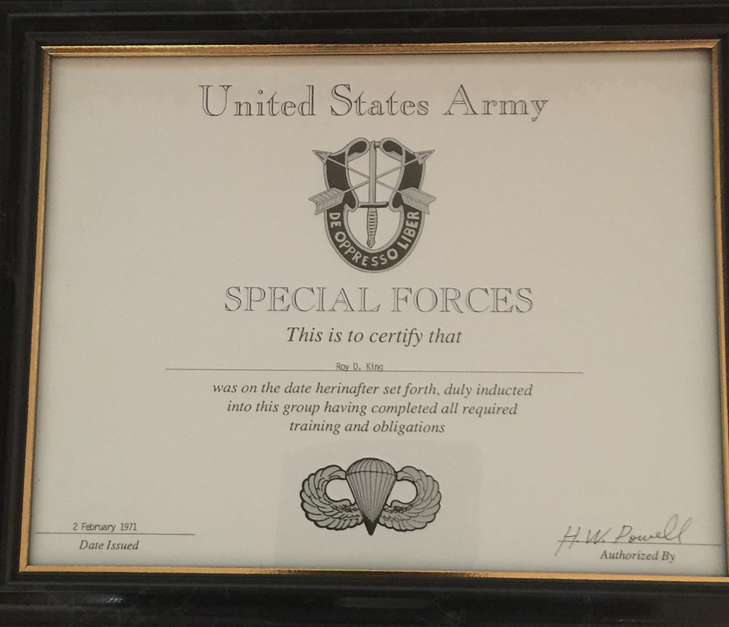 Even though Roy was US Army Special Forces / Green Beret / Delta Force, he also has his “very special” Force Recon ID card. No real Green Beret/ Delta Force Operator leaves home without a U.S. Marine Corps Special Forces Force RECON card.