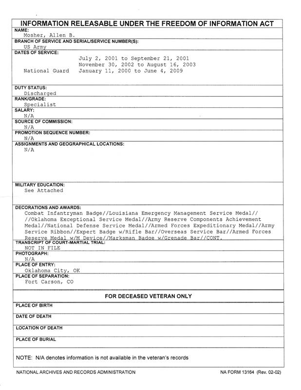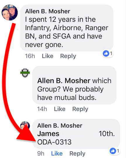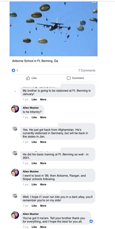 In the fine print of his fake book (?) page, Embellishing POS Allen Mosher also makes claim to sniper school. Didn’t see that listed on the 214. Why am I not surprised.