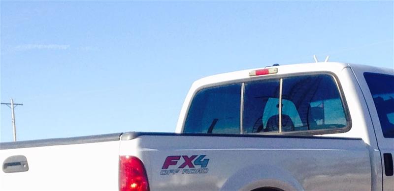 (Bottom row center of rack on rear truck window)