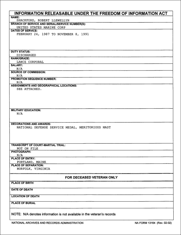 The sad thing is he had no reason to embellish his career. His records show that he was assigned to the 3rd Battalion of 10th Marines. Back in the day, they were primarily deployed to places like, Beirut, Grenada, Kosovo, and a half dozen other operations as part of the Marine Expeditionary Units. It does not appear that Lance Corporal Shackford deployed into harm’s way but he damn sure served with many who did.