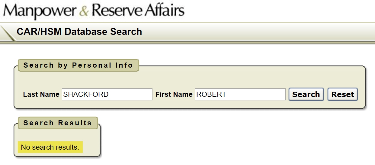 I couldn’t find the Manpower & Reserve Affairs CAR/HSM database. Anyone have a link?