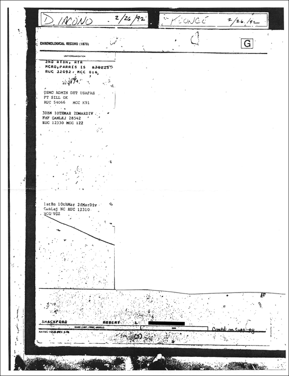 Little Bobby Shackford has a National Defense Service Medal in his records, no Purple Heart, no Combat Action Ribbon, and none of those other medals either. We checked in with some of the RECON groups and whaddaya know, nobody in RECON ever heard of him.