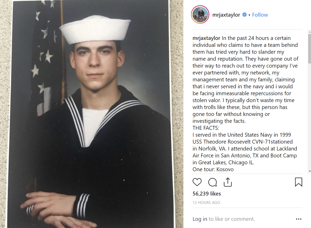 Jax Taylor, a television star on the show “Vanderpump Rules,” has recently come under fire from a posting he made about his military service. Some have said it was a case of stolen valor. Read about it here.