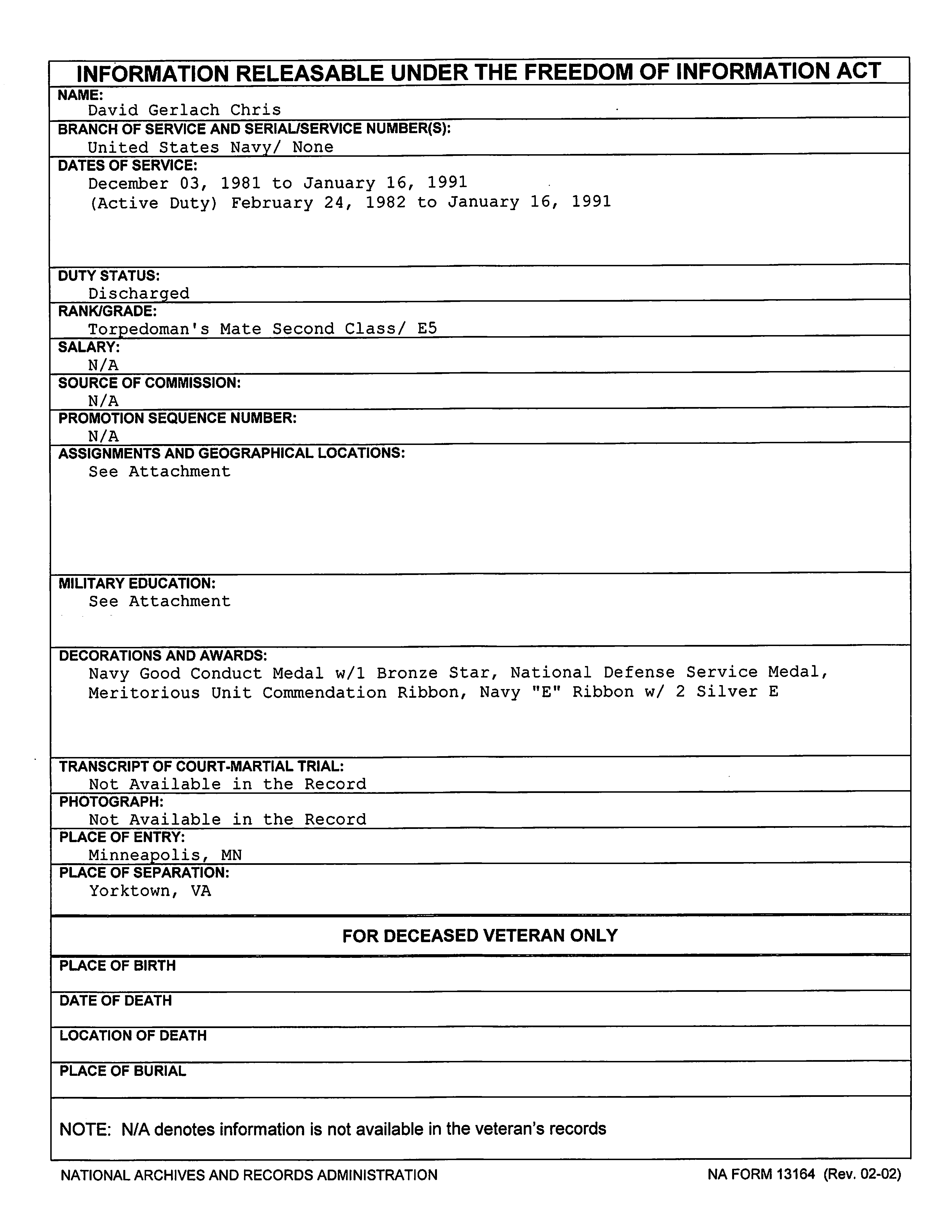 So the BUD/S-SEAL database was checked along with other important resources and Gerlach’s name was not listed, so his military records were ordered through a Freedom of Information Act Request (FOIA). As you may have guessed, they tell a different story…