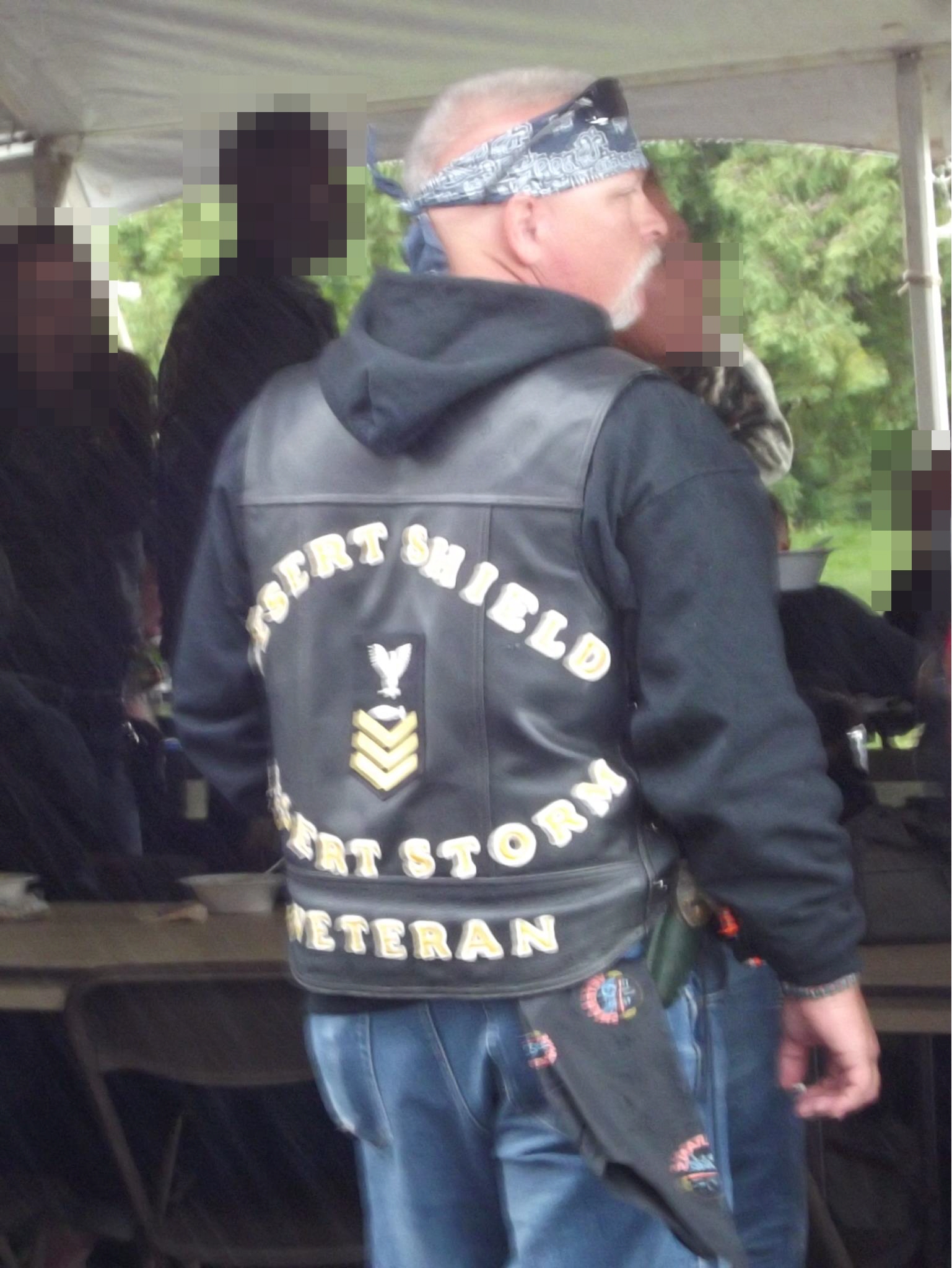 On the reverse side of this jacket, he claims to have been a Torpedoman’s Mate First Class (E-6) as well as a Veteran of Desert Shield/Storm…