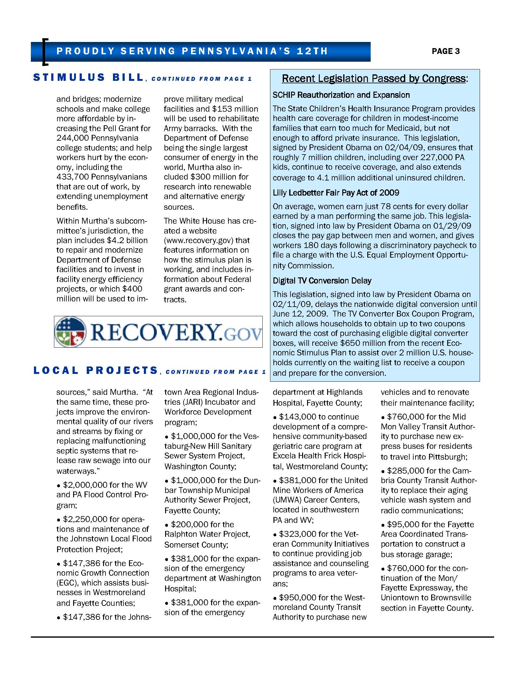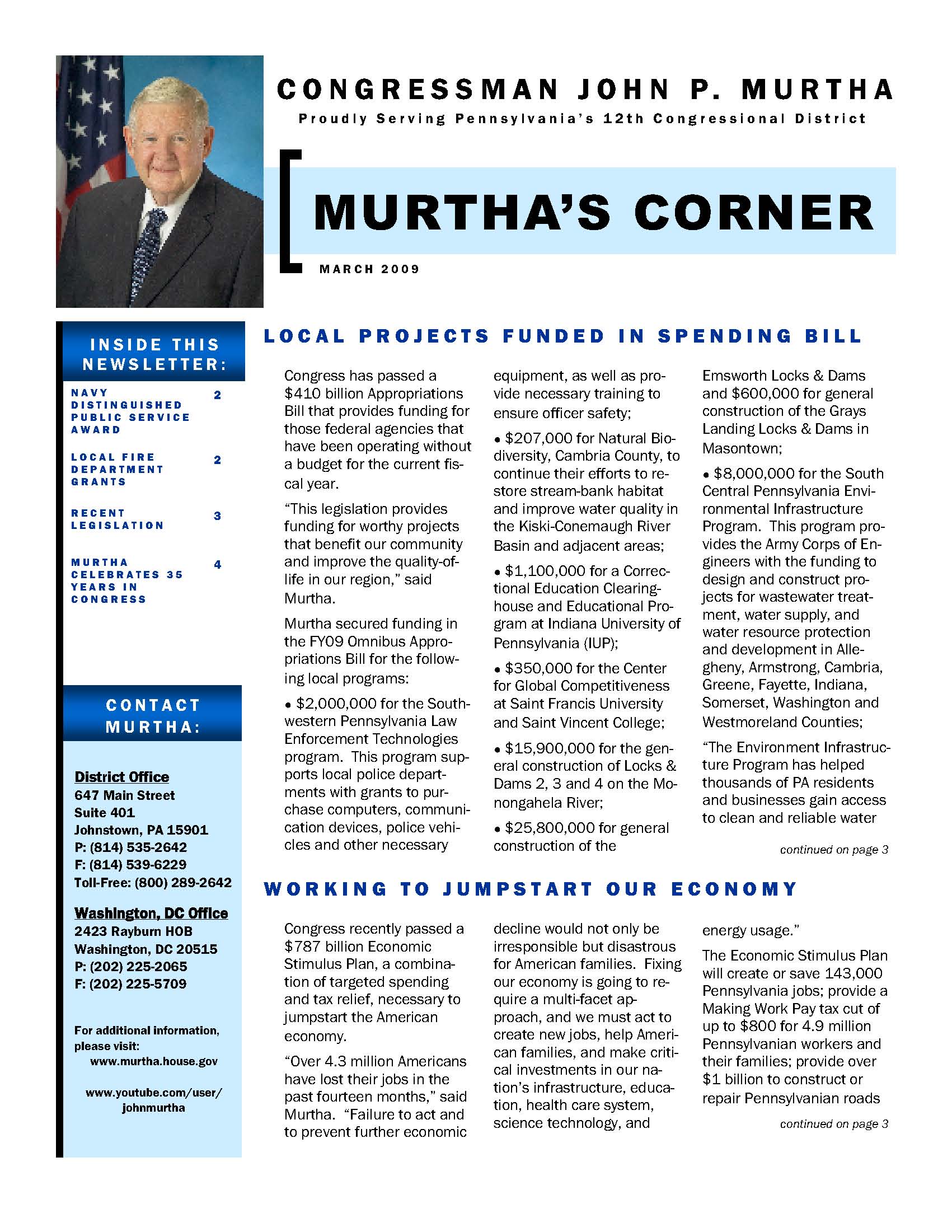 Frankly Opinionated sent me this newsletter portly John Murtha sent out to his constituents. It lists some of the pork he’s bringing home to them in that spending bill that the President didn’t want to sign but did anyway;