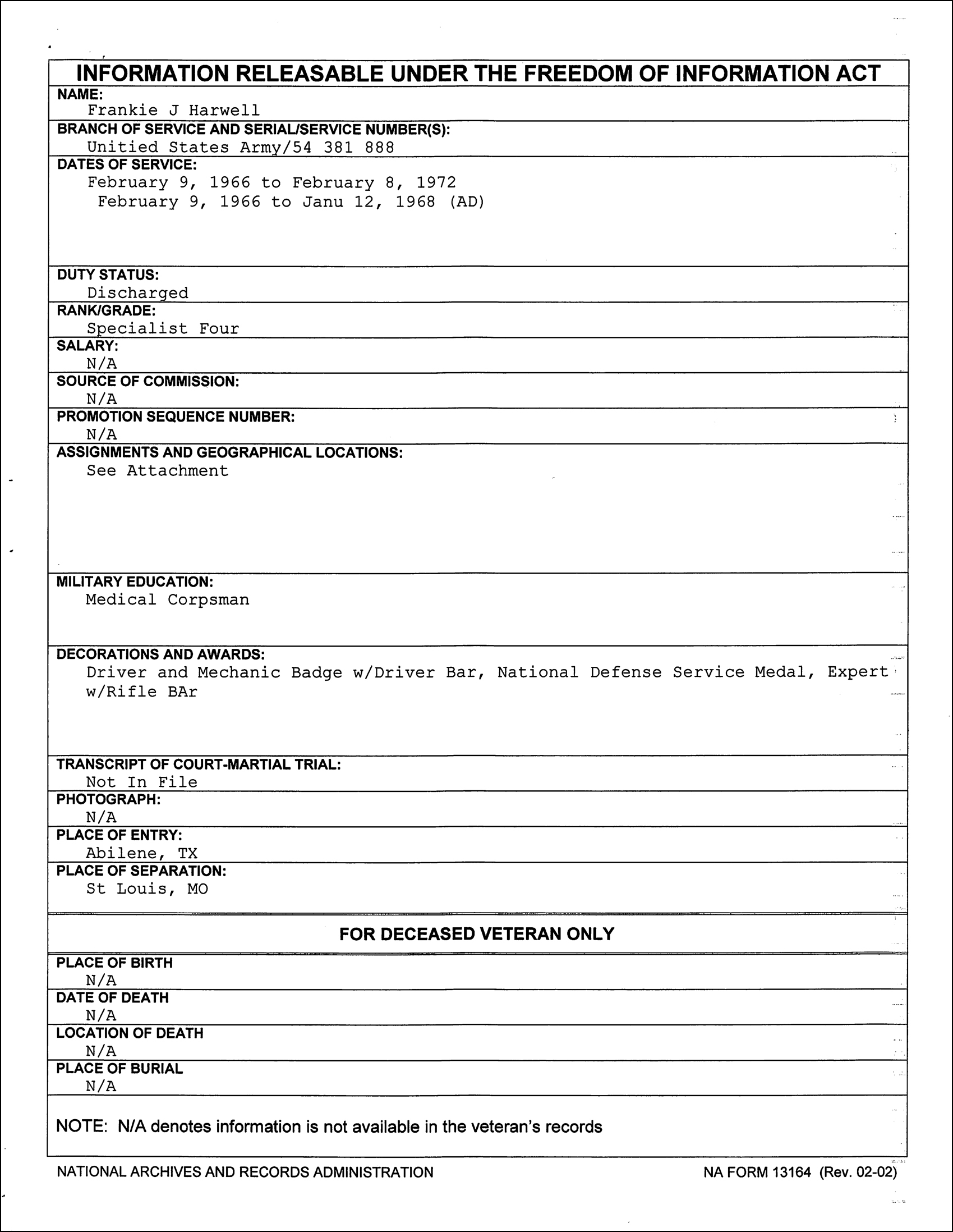 So after a SEAL at Military Phony confirmed that Frank Harwell was never a SEAL according to the BUD/S database, Frank’s official military records were ordered through a Freedom of Information Act (FOIA) request.