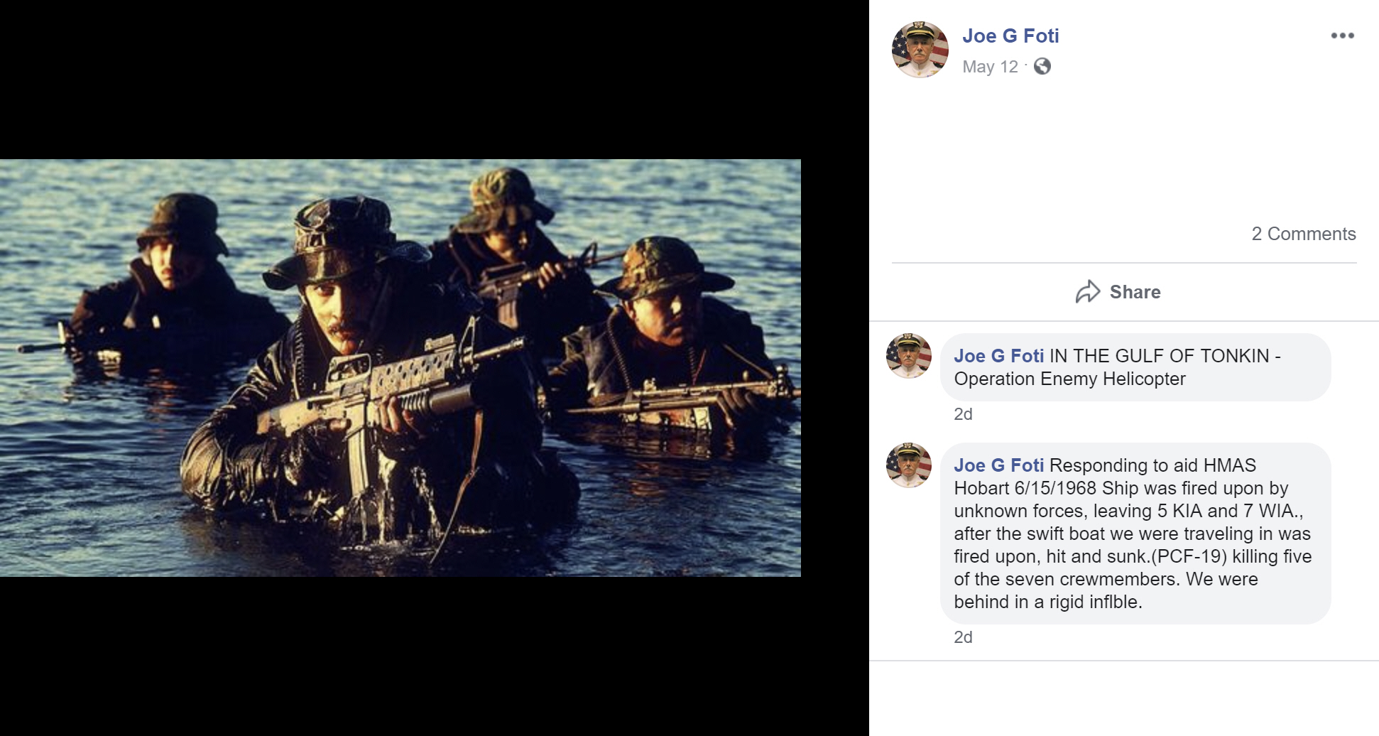 He elaborates on his Facebook photo saying it was from the Gulf of Tonkin during “Operation Enemy Helicopter.”