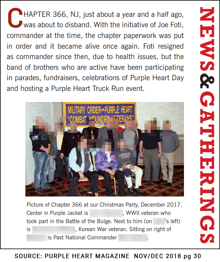This is significant, because he served as Chapter 366 Commander of the Clifton NJ Military Order of the Purple Heart…