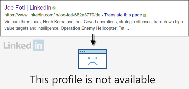 In a cached version of a LinkedIn profile he has since deleted, he listed three (3) tours of Vietnam and one tour in North Korea…