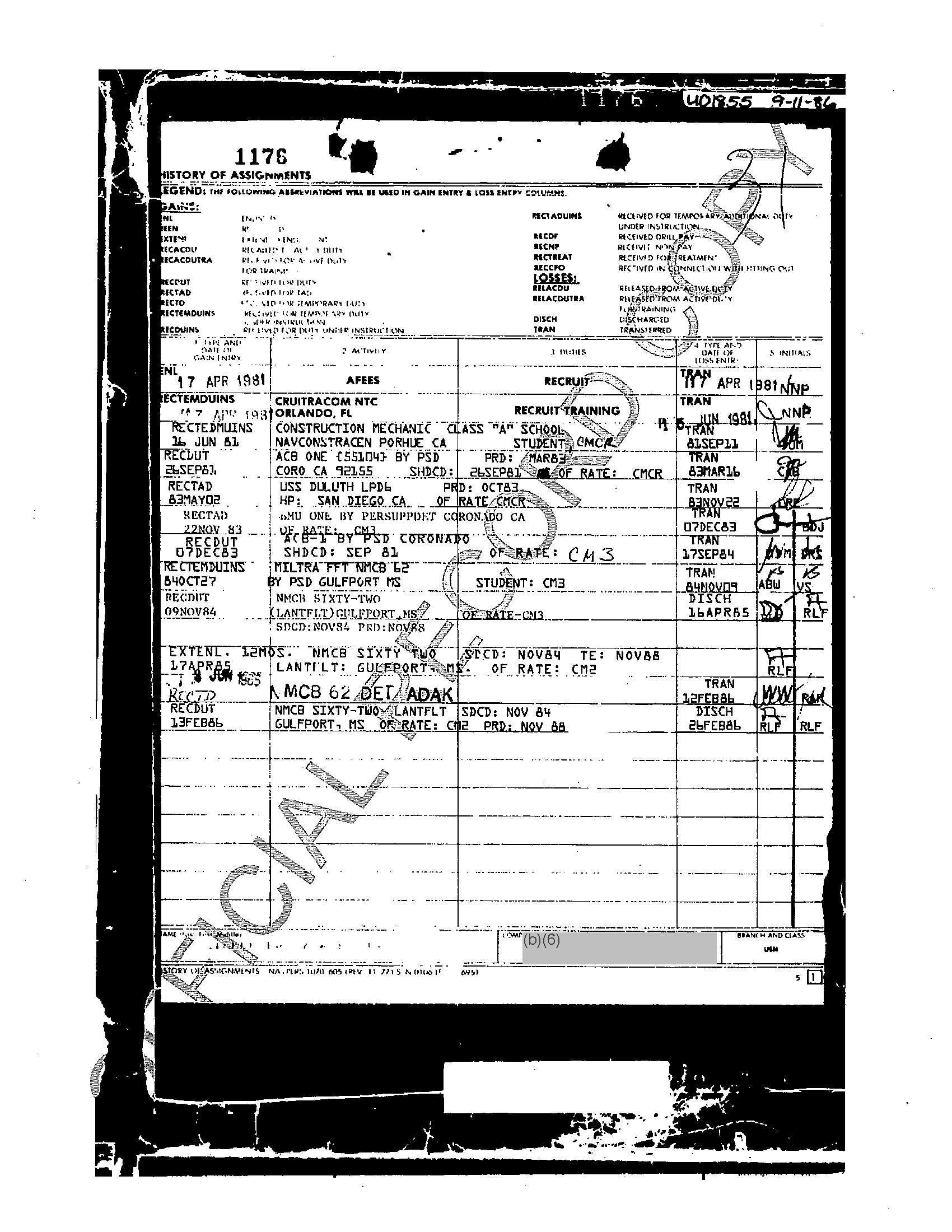 In 2000, we had a real deal check into my old Battalion, was checking out the day he checked in. He was a new Ensign, went from enlisted SEAL to Supply Corps Officer, form old Seaman to Admiral program. The day he checked in the Command Master Chief wanted to meet with him and made some phone calls to find out why a SEAL was checking in as a Supply officer. The difference here was the Master Chief was a thirty year straight Active Seabee and had been there done that. Not knocking reserves but they have a hard time doing things like that, checking.