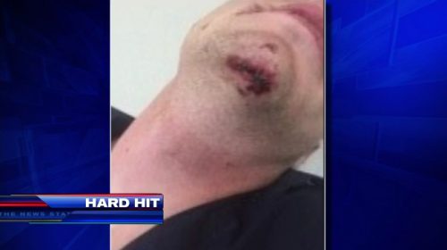 The veteran says the strike caused him to fall face first to the ground, leaving his chin busted open and his jaw broken.