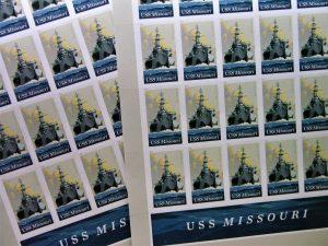 This time, it’s the USS Missouri, aka Big Mo. A US Post Office stamp has been issued in this retired battleship’s honor.