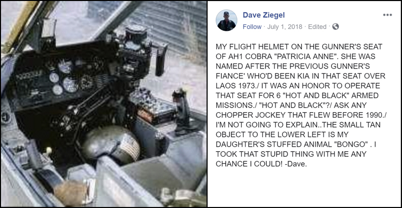 BTW, the photo of the gunners seat on the AH1 Cobra “Patricia Anne” he posted?