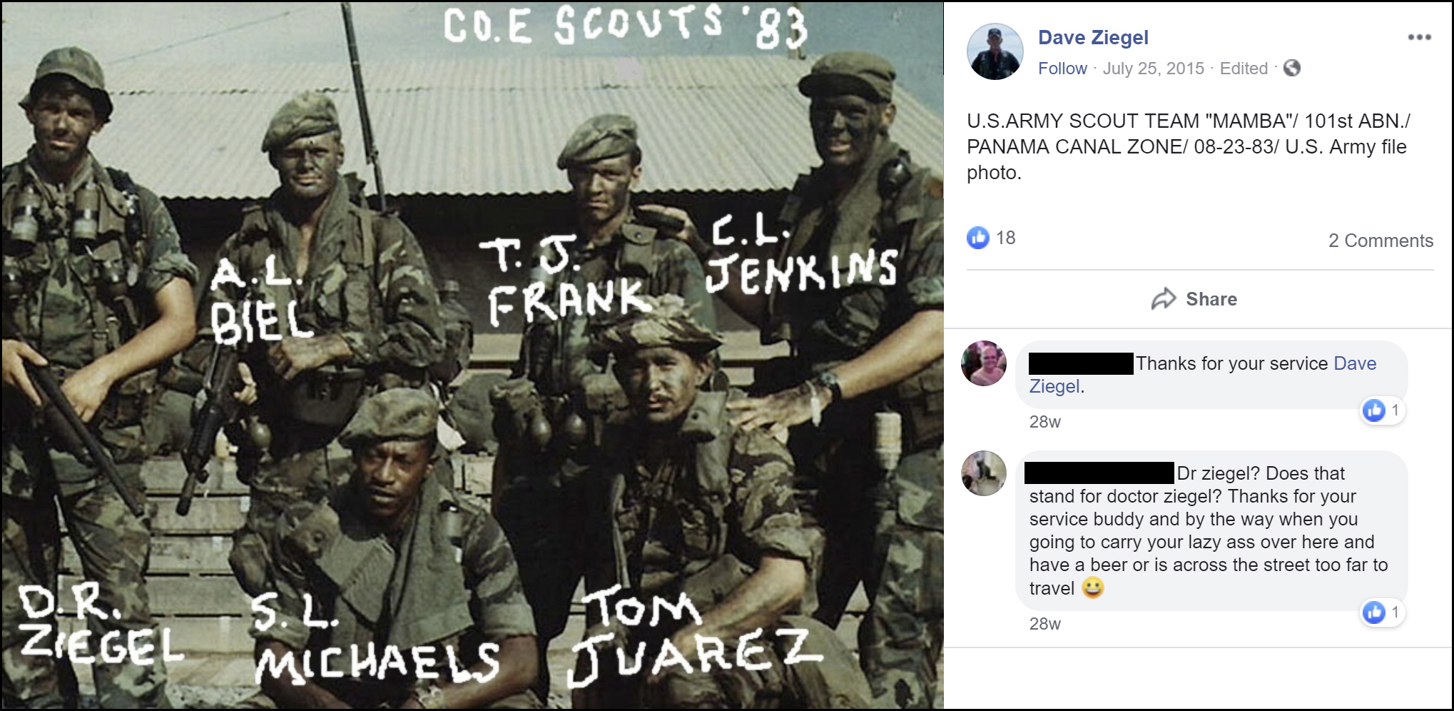 Ziegel “Mamba LRRP” Counter-Narcotics soldier is a lie.