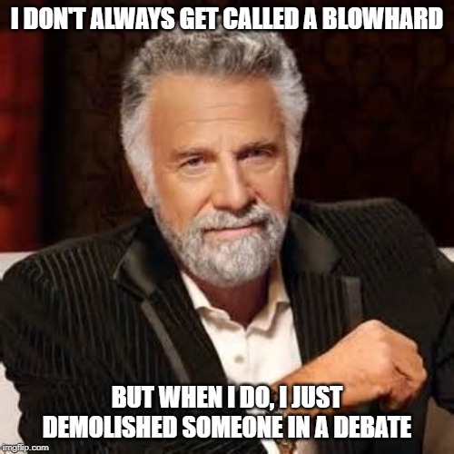 I look forward to dismantling your next reply. I don’t do this to change your mind. Likewise, I always come out of these arguments with one of two things happening. One, I have the exact same argument that I had before the argument or… Two, I’m further entrenched in my position than prior to the argument.
