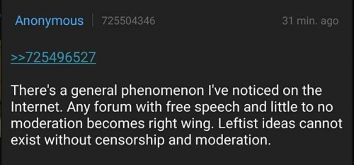 “Leftist ideas cannot exist without moderation and censorship” because turds dry out in the sun and blow away in the wind.