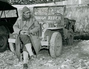 Do believe that is Teddy Jr. He was an older man, did wear glasses and the jeep has the single star of a BG. Seems like I remember reading somewhere that his jeep/and/or call sign was Rough Rider.