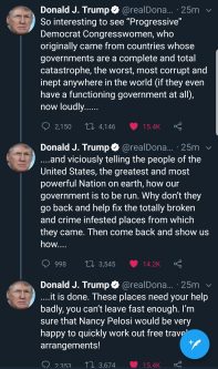 With a couple of quick Tweets, DJT has these same less radical Democrats solidly realigning themselves with and loudly, publicly defending the four unpopular radicals who are likely to cost the Democrats election victories in 2020.