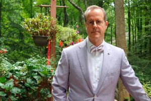 In a Aug. 1, 2019, photo, Bruce Fleming, a tenured civilian English professor who has been a longtime critic of the Naval Academy, stands on the deck of his home after an interview in Davidsonville, Maryland. (Brian Witte/AP)