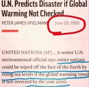 I remember being told about the coming ice age in the seventies that was going to be caused by hydrocarbon emissions and in the eighties I was getting told that at least 50% of the world’s population was going to be dead by2000 due to climate change. Fuck the eco-doomsday propagandists!