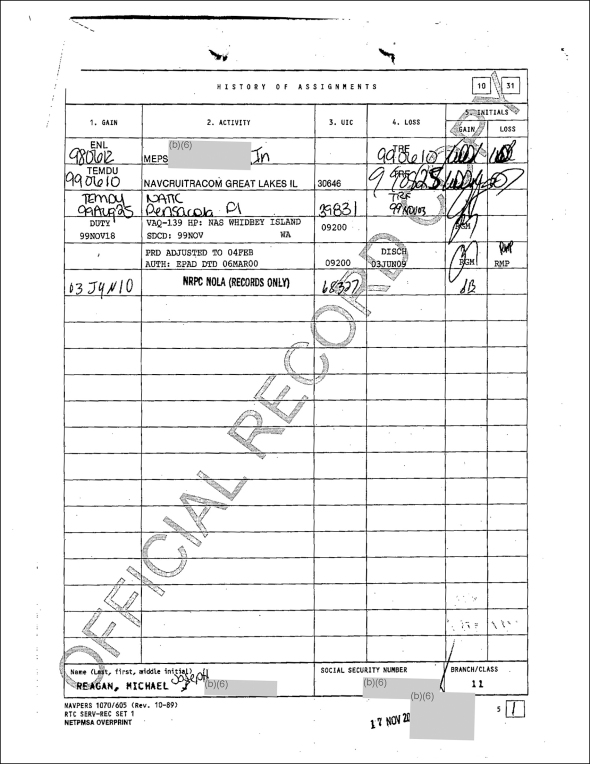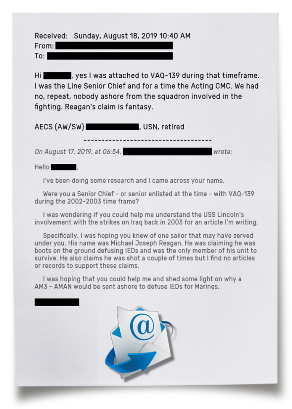 The Senior Enlisted from Michael Reagan’s command, VAQ-139, was contacted in an effort to verify some of his claims…