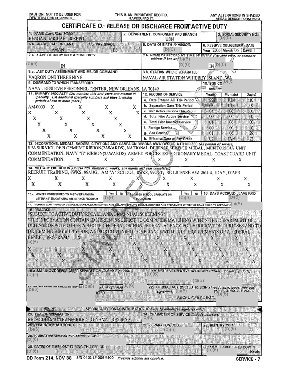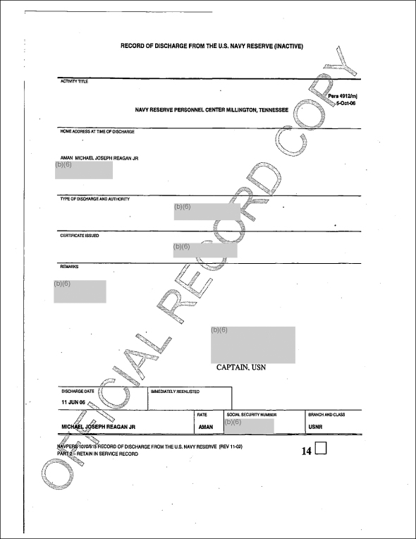 Department of the Navy – FOIA Result – Reagan – DD-214