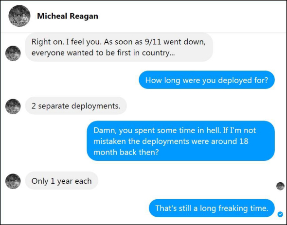 So, from her statements it sounds like Michael Reagan was boots on the ground in both Afghanstan and Iraq.