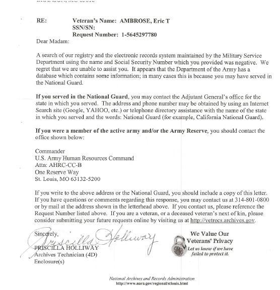 Well, at the time, about a month ago, POW Net helped us submit a FOIA check on the creep. And here are the results;