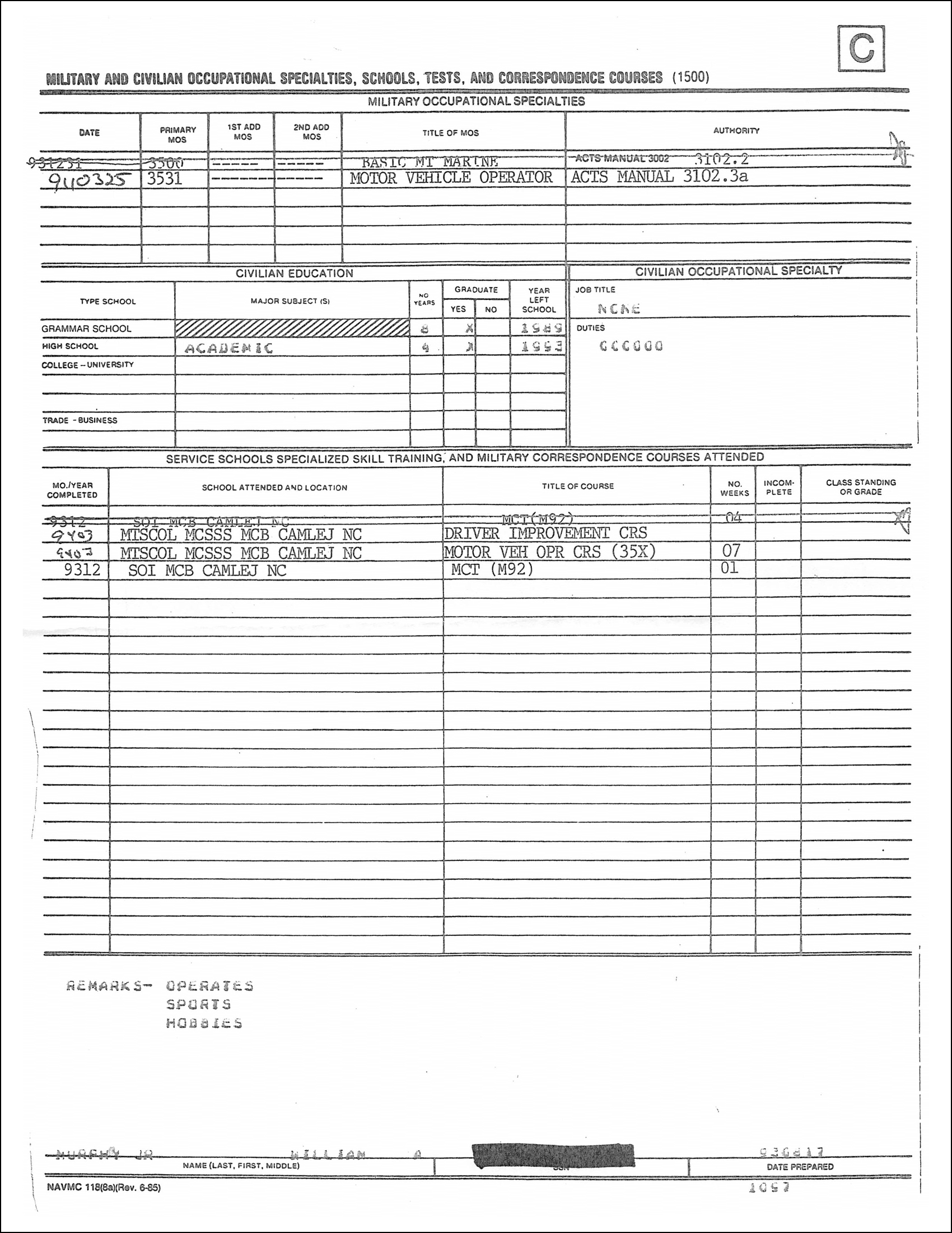 I do take a modicum of comfort knowing Murphy did not earn the Marine Corps Good Conduct Medal or Junior Enlisted Motor T Operator of the Year Award.