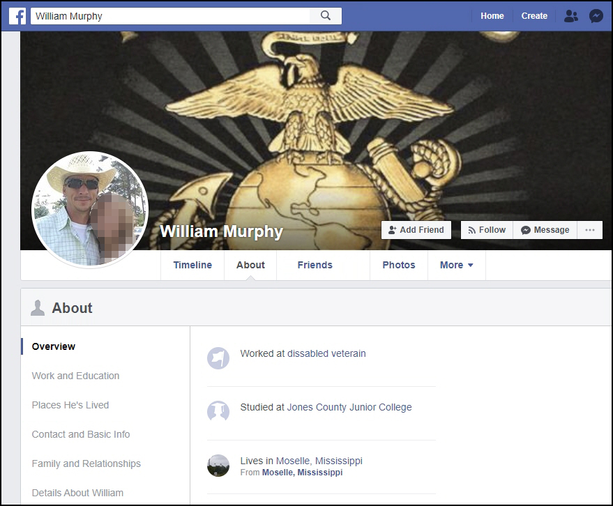 The folks at Military Phony send us their work on William Alfred Murphy Jr. who lives in Moselle, Mississippi.