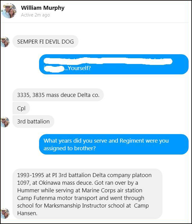 And Murphy also spoke about serving with the 3rd Marine Division in Okinawa…