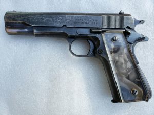 A friend of mine has his Grandads Colt 1911 .45 still in the original box and brand new. Also in the box, a Colt .32 Auto. I don’t think there were any serial numbers on the .45. I should give him a ring. During Hurricane Sandy, there was a light coat of rust on the .45 since he got 7 feet of water in his house. I told him to use 4 or five zero steel wool with gun oil and gently wipe it off. Came out like it never had rust on it.