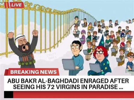 Abu Hamza al-Qurayshi: “Yeah, you know, that’s great and all, but I’m kinda busy right now, My goats and all and hey, I haven’t had a really good salon treatment in a LONG time, and my hair and beard are just a mess and I just got an appointment with my girl on Saturday so, i really am not available…
