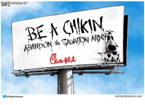 I wrote here about Chick-fil-A caving in to liberal pressure by limiting its financial support to a small group of organizations that does not include, among others, the Salvation Army. This strikes me as an unforced error and a terrible business decision. Chick-fil-A is the country’s fastest-growing and arguably most successful fast-food company. Its fanatical customer loyalty is undoubtedly fueled in part by the company’s open patriotism and its refusal (until now) to knuckle under to far-left activists. So this appears to be another instance of a company prioritizing the liberal-leaning fraternity of CEOs over its own customers.