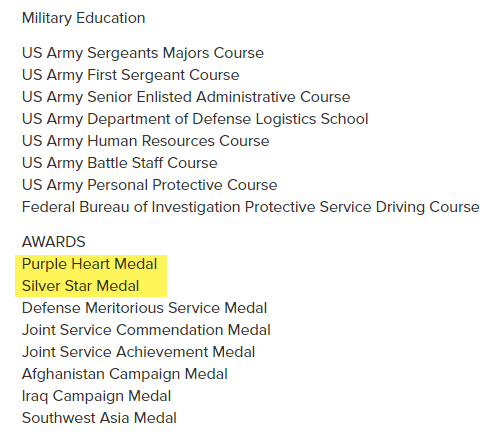 Ramsdell’s resume listing the Silver Star and Purple Heart is still out there and can be found here:
