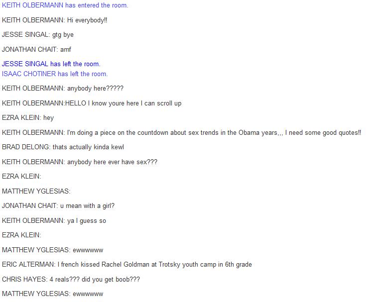 Whenever I need a chuckle, I head over to Iowahawk and today is no different. Somehow he got a screencap of a discussion at the famous Journo-List. Here’s a sample of One Afternoon in a Secret Corner of the Internet;
