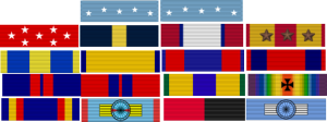 | 2nd row | Marine Corps Brevet Medal | Distinguished Service Medal (Navy) | Distinguished Service Medal (Army) | Marine Corps Expeditionary Medal with three bronze service stars |