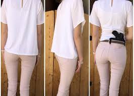As promised, some links and things for the ladies to conceal carry. There really is no “one” way to carry- it takes practice and trial-and-error. The pros say to dress around the weapon, easier said than done. Until you find the two or three carry systems that work for you, you’ll have drawer full of holsters. Ask any gun guy.