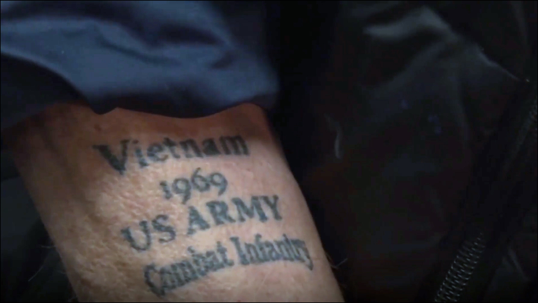 A couple of notes to keep in mind with the video. Although no verbal claims, there is a small segment with Reiten doing voiceover that shows an arm tattoo with the implication it is Reiten’s. You can also partially see it with his face in the frame. It says “Vietnam 1969 US ARMY Combat Infantry”