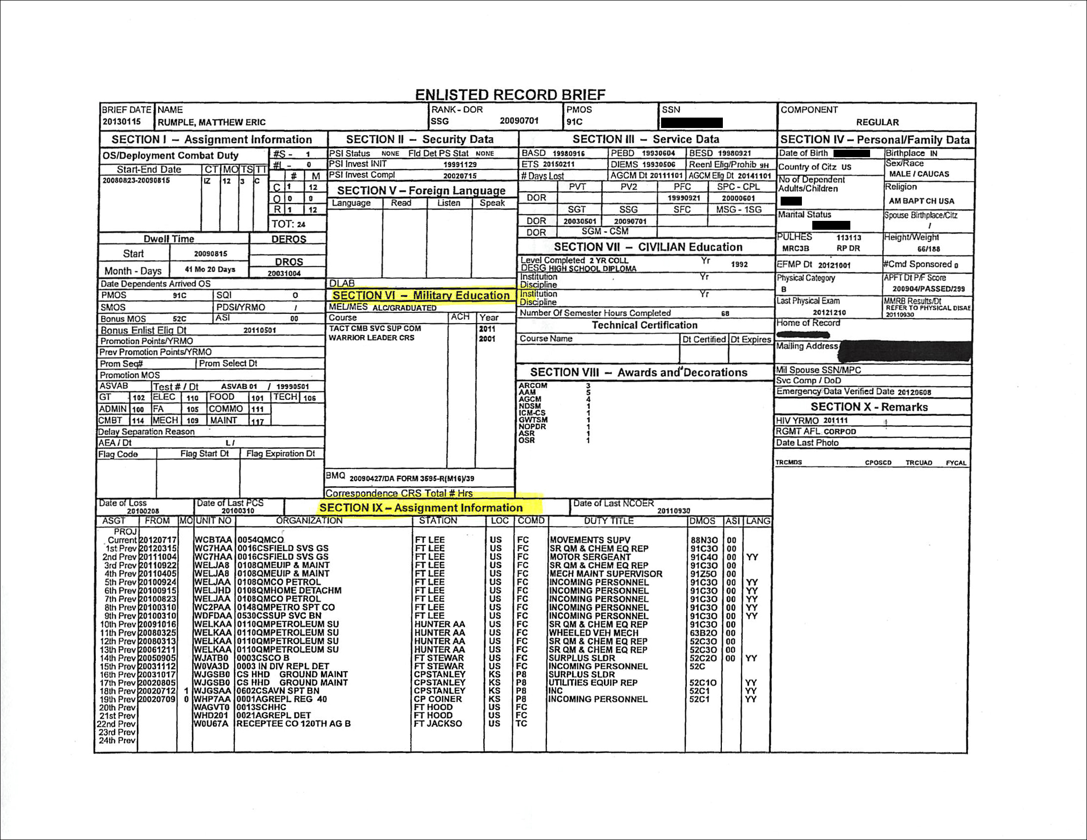 I will say this, it is truly a shame that someone with a perfectly acceptable career couldn’t just keep it that way. He was an E6 91C, had almost 15 years, plenty of awards and a deployment. Ride that out and move on.