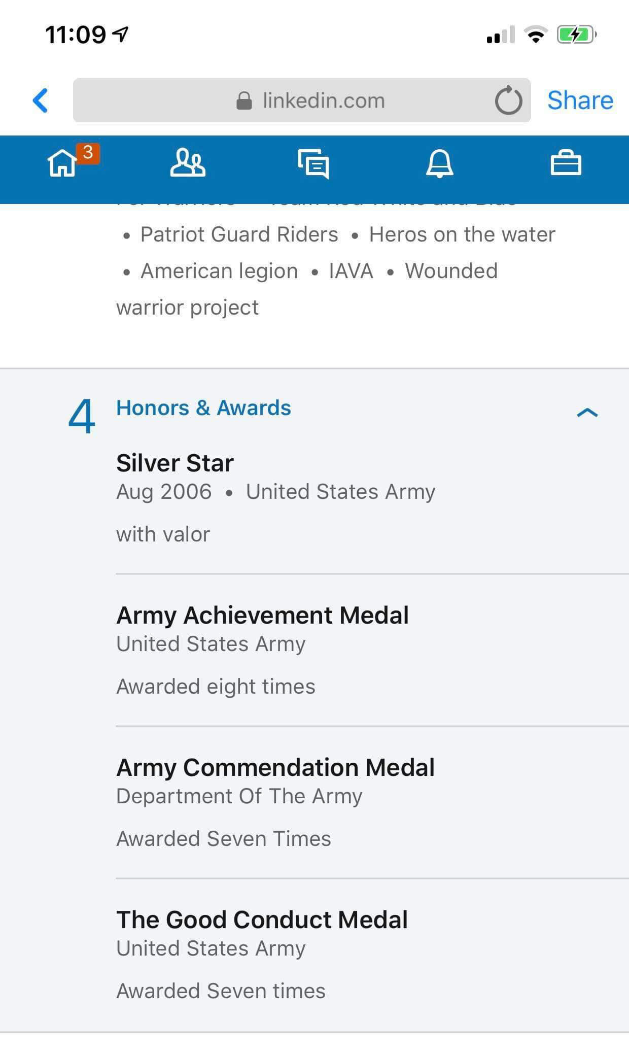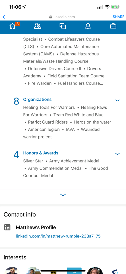 Now there is the thing tho, if you want more information on him, you can actually connect with his Army buddies. Look at the Skills & Endorsements section.