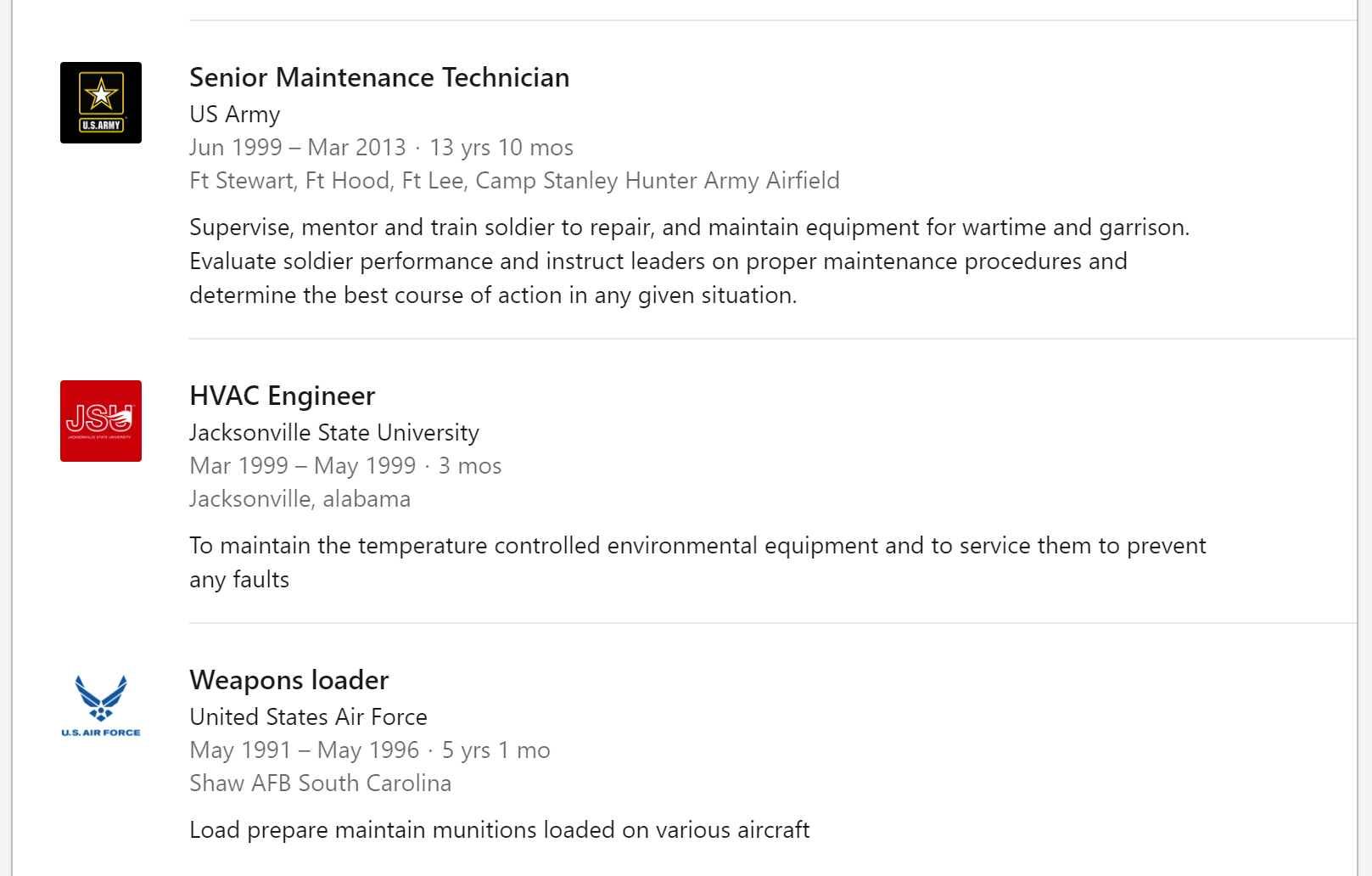 That said, the discrepancy seems to be with the US Air Force vs. the Army for the 21 year claim so I don’t think we are talking about medical time on the back end of his Army time. He clearly misrepresented his US Air Force service on LinkedIn by stating 5 yrs 1 month vs the one year confirmed both by DoD Manpower/SCRA and NPRC.
